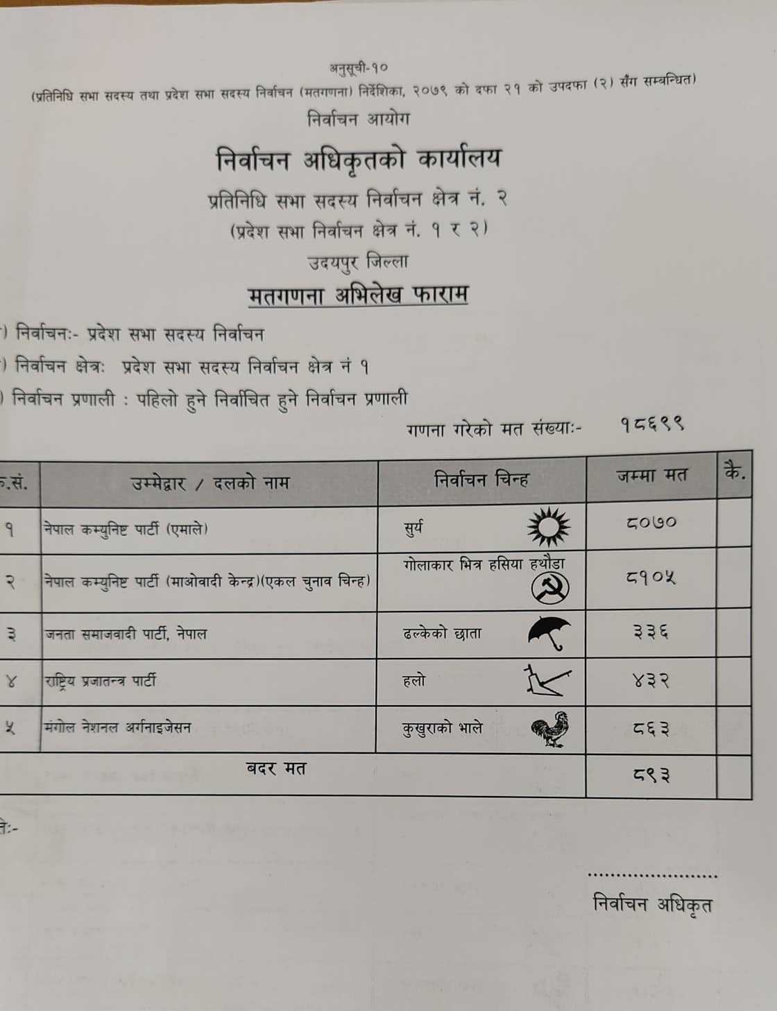 उदयपुर – उदयपुर निर्वाचन क्षेत्र नं. २ प्रदेश सभा सदस्य २ (क) मा नारायण बहादुर बुर्जामगर ३५ मतले विजयी भएको छ । सत्ता गठबन्धनको साझा उम्मेदबार नेकपा माओवादीका नेता बुर्जामगरले ८ हजार १०५ मत ल्याएर विजयी भएको प्रतिनिधि र प्रदेश सभा निर्वाचन अधिकृतको कार्यालय कटारीले जनाएको छ ।