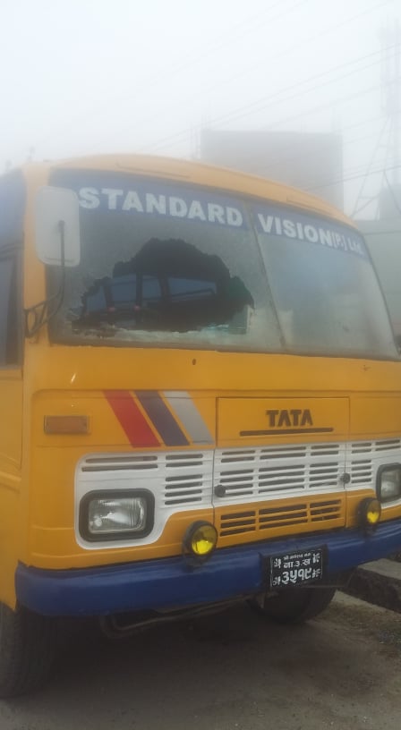 उदयपुर, उदयपुरको त्रियुगा नगरपालिका ३ मोतिगडा स्थित स्ट्याण्डर्ड भिजन एकेडेमी बसको सोमबार राति अज्ञात समूहद्वारा सिसा फुटाएका छन् । अज्ञात समूहद्वारा स्कूल अगाडी स्टेनमा राखेको ना. ३ ख ३५१९ नम्बरको बसको अगाडीको सिसा फुटाई दिएका हुन् ।