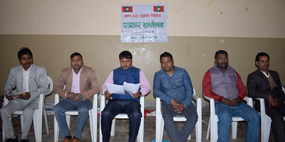 बुटवल । सिके राउत नेतृत्वको स्वतन्त्र मधेश गठबन्धनले स्वतन्त्र मधेशको बटमलाइन कायमै रहेको बताएका छन् । गठबन्धन रुपन्देही समितिले भैरहवामा पत्रकार सम्मेलन गर्दै स्वतन्त्र मधेशको मुद्दा त्याग्नेबारे सरकारसँग कुनै सम्झौता नभएको बताएको छ ।