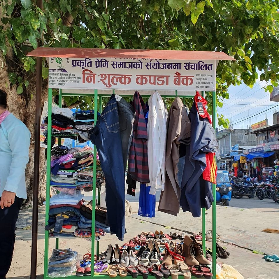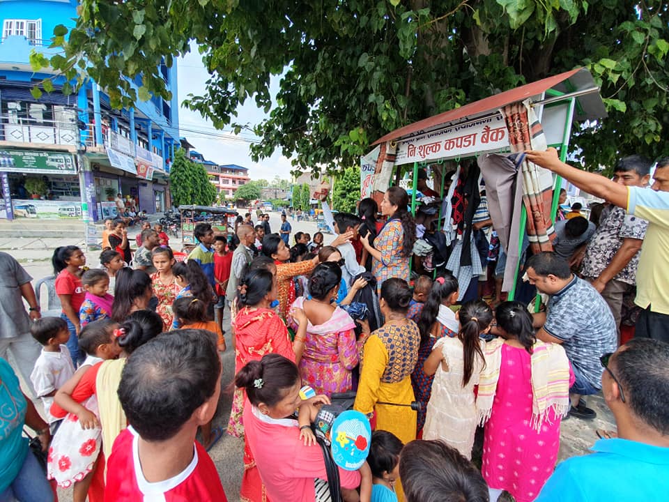 विभिन्न सामाजिक संघ संस्था समेतको सहकार्यमा प्राकृतिक प्रेमी समाजको अगुवाईमा केही दिन यता नयाँ तथा लगाउन मिल्ने राम्रो कपडाको संकलन गरि कपडा बैंकमा जम्मा गरिएका थिए । करिव पाँच सय थान कपडा संकलन भएको र वितरण गरिएको प्रकृति प्रेमी समाजका अध्यक्ष दिनेश श्रेष्ठले बताए ।