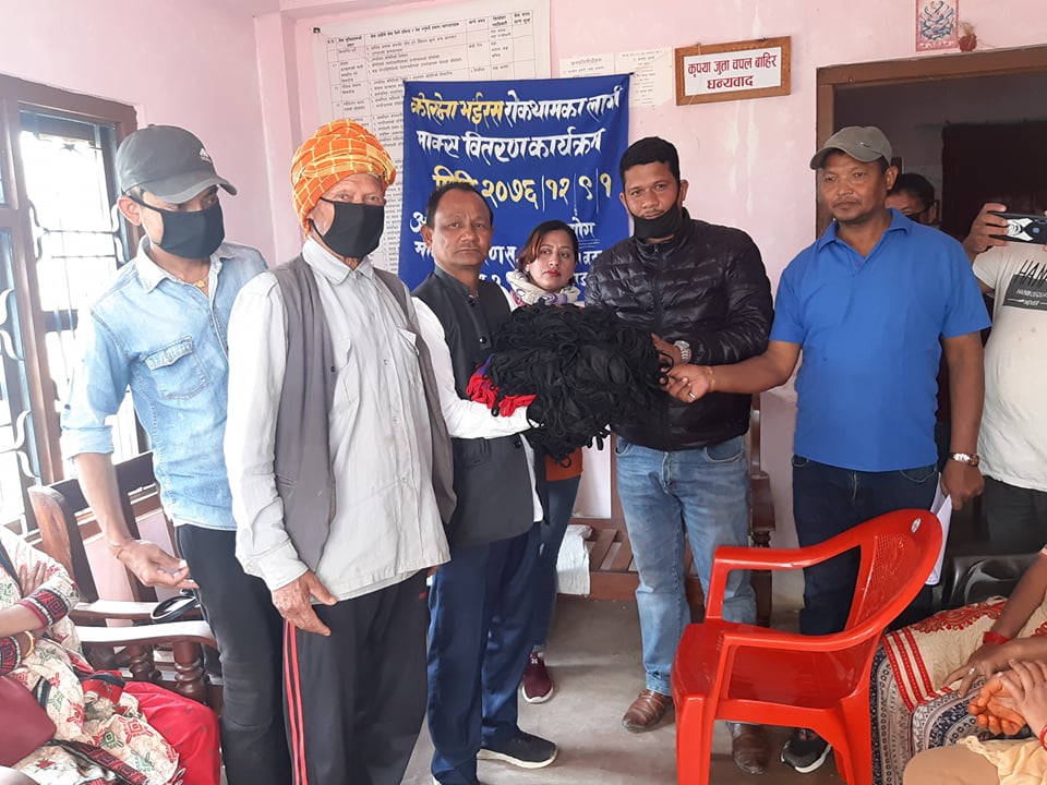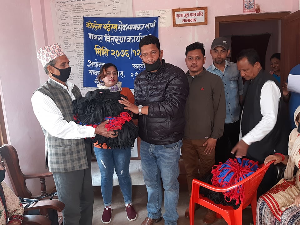 वडामा रहेको ६ वटा टोल विकास संस्थामार्फत माक्स वितरण गर्ने कार्यक्रम रहेकोले टोल विकास संस्थाका अध्यक्ष तथा प्रतिनिधिलाई माक्स हस्तान्तरण गरिएको वडाध्यक्ष सुवेदीले बताए ।