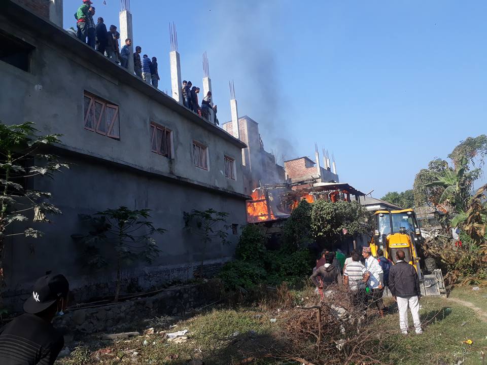 विद्युतिय सर्ट भएर आगलागी भएको इलाका प्रहरी कार्यालय रामपुरका इन्चार्ज नविन कुमार सिंहले जानकारी दिए । उनका अनुसार आगलागीबाट विश्वकर्माको काठले बनेको दुई तल्ले घर जलेर नष्ट भएको छ । सिंहले भने, ‘भिम बहादुर विश्वकर्माको घर नजिकैको एउटा घर डोजरले नभत्काएको भए पुरै रामपुर बजारमा नै आगो ध्वस्त हुने थियो ।’
