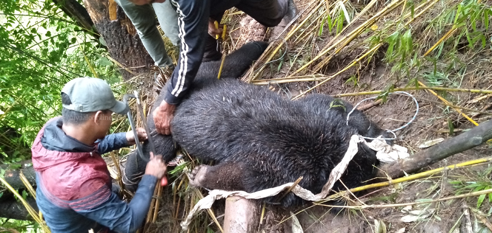 उदयपुर । उदयपुरको चुरिया जंगलमा करेन्ट लागेर भालुको ज्यान गएको छ । कटारी नगरपालिका २ स्थित चुरे जंगलमा करेन्ट लागेर एक भालु मरेको हो । मिर्चैया–कटारी अन्तर्गत विस्तार गरिएको हाइटेन्सन विद्युत लाइनछेउ सोमबार बिहान भालु मृत भेटिएको हो ।