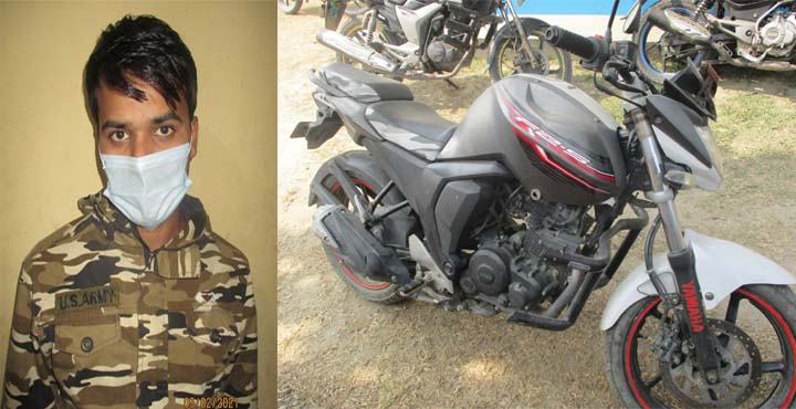उदयपुर । उदयपुरको बेलका नगरपालिका ६ लेकाली टोलबाट मोटर साइकल चोरी गरी फरार एक युवक शनिबार पक्राउ परेको छ । गत विहिबार राति को. २४ प ९५३२ नम्बरको मोटरसाइकल चोरी गरेको आरोपमा सप्तरी कन्चनरुप नगरपालिका ११ बस्ने मोहमद नसरुदिन पक्राउ परेको इलाका प्रहरी कार्यालय रामपुरले जनाएको छ ।