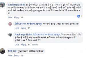 यता डिभिजन वन कार्यालयले मान्छे मार्ने हात्तीलाई कार्वाही गर्ने जनाएको छ । डिभिजन वन कार्यालयको फेसबुक पेजमा मृतक प्रति श्रद्र्धाञ्जली व्यक्त गर्दै मान्छे मार्ने हात्तीलाई कडा भन्दा कडा कार्वाही हुने भनिएको छ । समाजिक संजाल प्रयोगकर्ता रोहित आचार्यले मान्छे मार्ने हात्तीलाई कार्वाही हुन्छ की हुदैन ? के छ वन ऐनमा भन्ने प्रश्नको जवाफमा डिभिजन वन कार्यालयले भनेको छ ‘कार्वाही हुन्छ, कडा कारर्वाही छ ऐनमा’ एक महिनाको अवधिमा हात्तीले उदयपुरको त्रियुगा नगरपालिका, चौदण्डीगढी र बेलका नगरपालिकामा गरी दर्जन भन्दा बढी घर भत्काई र अन्नपात नष्ट गरिदिएको छ ।