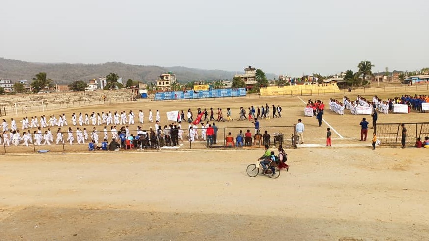 उदयपुर । उदयपुरमा प्रथम त्रियुगा नगर खेलकुद महोत्सव सुरु भएको छ । “खेलकुद हाम्रो शान, स्थानीय खेलाडी उत्पादनमा हाम्रो अभियन” भन्ने नारा सहित नगर युवा तथा खेलकुद विकास समिति त्रियुगाको आयोजनामा पुरानो गाईघट स्थित थारुहट रंगशालाको मैदानमा प्रथम त्रियुगा नगर खेलकुद महोत्सव शुरु भएको हो ।