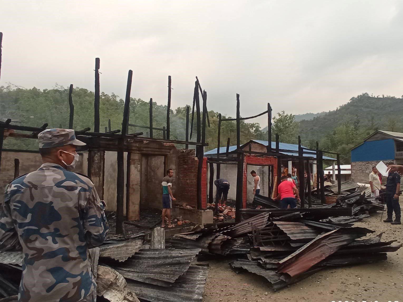उदयपुर । उदयपुरको चौदण्डीगढी नगरपालिका ८ वीरेन्द्र बजारमा आईतबार विहान भएको आगलागीबाट एकै ठाउँका ५ घर जलेर नष्ट भएका छन् भने थप २ स्थानीयको पनि धनमाल क्षति पुगेको छ । स्थानीय भरत राईको घरमा विहान ४ः१५ बजे विद्युत सर्ट भई आगलागी हुँदा उनको सँगै छिमेकी आधादर्जनको घर र धनमाल जलेर नष्ट भएको प्रहरीले जनाएको छ ।