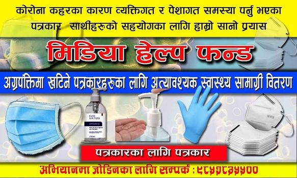 कोरोना कहरका कारण व्यक्तिगत र पेशागत समस्या पर्नु परेका पत्रकार साथीहरुको सहयोगका लागि ‘पत्रकारका लागि पत्रकार’ भन्ने नाराका साथ मिडिया हेल्प फण्ड गठन गरेको उदयपुरका पत्रकार इश्वर तामाङले बताए । तामाङका अनुसार उदयपुरमा क्रियाशिल पत्रकारहरुले जनहि रु १००० का दरले विउ पूँजी संकलन गरि कोषको सुरुवात गरिएको हो । ‘यस फण्डमा सम्पूर्ण पत्रकारहरुलाई जोडिन आव्हान गरेका छौ ।’ उनले भने, ‘पत्रकारलाई सहयोग गर्न स्थापित हेल्प फण्डमा सहयोग गरि अग्रपंतीमा रहेर सूचना सम्प्रेषण गर्ने संचारकर्मीहरुको मनोवल उच्च बनाउन हुन सम्पूर्ण उद्यमी, व्यवसायी, संघ संस्था र कार्यालयहरुलाई हार्दिक अनुरोध गर्दछौ ।’