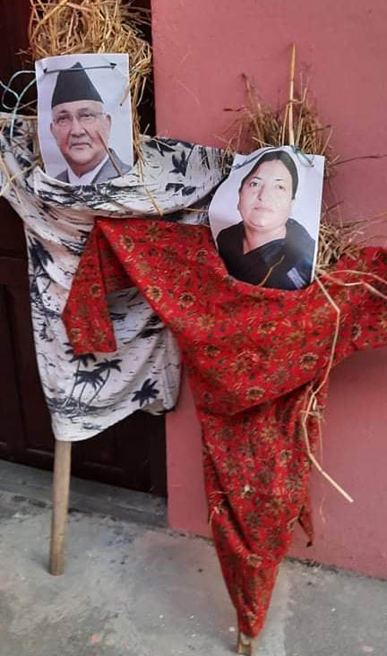 खड्ग ओली मुर्दावाद, विद्या भण्डारी मुर्दावाद, प्रतिगमन मुर्दाबाद लगायत नारासहित वाईसेलले राष्ट्रपति भण्डारी र प्रधानमन्त्री ओलीको पुत्ला दहन गरेको हो । कोरोना माहामारीको बिच सामाजिक दुरी र सुरक्षाको उपायहरु सहित थोरै संख्यामा ओली र विद्याको मनपरीलाई चर्को विरोधका साथ नाराजुलुस सहित पुत्ला समेत दहन गरेको हो ।