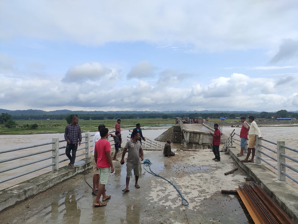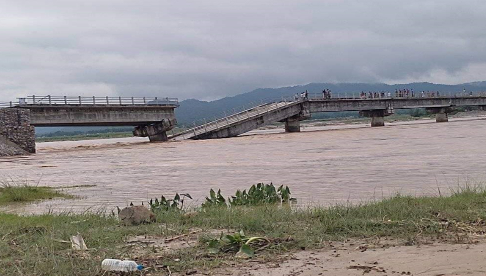 १२ वटा पिलर र ११ वटा स्लाब रहेकोमा बाढीले पुलको पिलर भासिएपछि एउटा सल्याप नदीमा झरेको छ र अर्को ढल्किएको छ । पुलको उत्तर पट्टीको अन्तिम स्लाब ढलान भएकोले पानी दक्षिाणतर्फ फर्काएको थियो । पानीको बहाव एउटै पिलरमा परेपछि पिलर भासिएको हुन सक्ने आयोजना प्रमुख खकुरेलले बताए । उनका अनुसार पिलर धस्नुको कारण बारे छानविन गरिने बताए ।