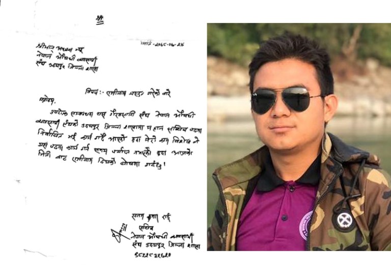 औषधी व्यवसायी संघका अध्यक्ष उद्धव दाहालले भने सचिवको राजिनामा फेसबुकमा आएको पुष्टी गरे । ‘सचिवको राजिनामा फेसबुकमा आएको छ, अब संस्थाको बैठक बसेर राजिनामा स्वीकृत गर्ने या नगर्ने निर्णय गर्छ ।’ अध्यक्ष दाहालले भने ‘सचिव राईले संघमा केही समस्या भएर राजिनामा दिनु भएको होईन, राजिनामाको बिषय छलफल पछि टुङ्गो लगाउने छौ ।’ अध्यक्ष दाहालले सचिव राईको राजिनामा स्वीकृत नहुने संकेत गर्दै भने ‘राजिनामा दिनु ठूलो कुरा होईन, ठूलो कुरा राजिनामा स्वीकृत हुनु न नहुनुले फरक पार्छ ।’