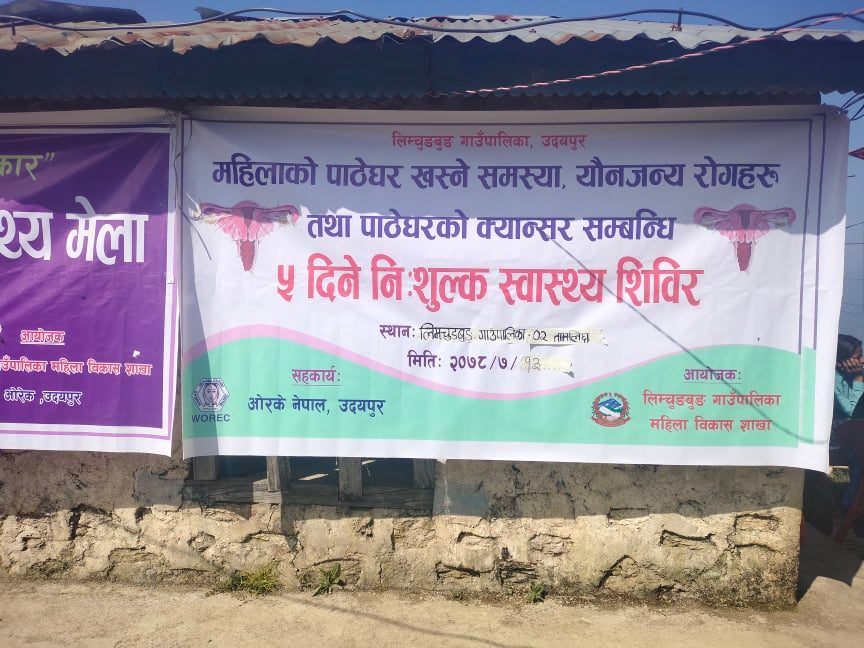 खासगरी महिलाहरुको बच्चादानी (पाठेघर)मा हुने क्यान्सरबाट बँचाउने उदेश्यले अयाोजित शिविरमा गाउँपालिकाका ५ वटै वडामा सञ्चालन गरिएको लिम्चुङबुङ गाउँपालिकाका अध्यक्ष मेजर राईले बताए । महिलाको बच्चादानीको सुरक्षा गर्न गाउँपालिकाले वडा वाईज घुम्ती शिविरमा २ सय ४५ जना सहभागी भएको अध्यक्ष राईले बताए । स्कृनिङ गरिएको मध्ये तेस्रो लिङ्गी सहित ४१ जनामा जटिल पाइएको अध्यक्ष राईले बताए । मेरो शरिर मेरो अधिकार मुल नाराका साथ एकिकृत महिला स्वास्थ्य मेलाको समेत आयोजना गरिएको थियो ।