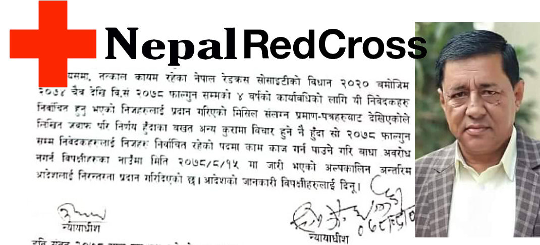 रेडक्रस उदयपुरका अध्यक्ष विनोद बस्नेतले दायर गरेको उत्पे्रसण परमादेश प्रतिषेध रिटलाई न्ययाधिस प्रधानको अल्पकालिन अन्तरिम आदेशलाई निरन्तरता दिदै न्यायधिस थारु र श्रेष्ठले फाुगुन सम्म अन्तरिम आदेश दिएका हुन ।