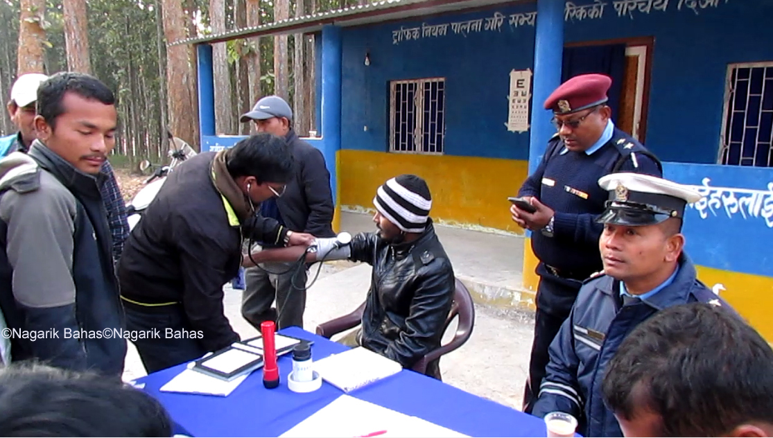 सुखिलाल चौधरी, उदयपुर, जिल्ला ट्राफिक प्रहरी कार्यालय उदयपुरले जिल्लाबाट संचालन हुने साना तथा ठूला सवारी साधनहरुको चालकको ब्लड प्रेसर कस्तो छ ? आँखा कमजोर छ छैन लगायतको स्वास्थ्यको चेक जाँच गरेको थियो । आइतबार ट्राफिक पोष्ट जलजलेमा ७० वटा सवारी साधन चालकको ब्लड प्रेसर र ६० जना चालकको आँखाको चेक जाँच गर्नुको साथै सवारी साधनको सम्पूर्ण अवस्थाको चेकजाँच, प्रदुषण चेक जाँच गरिएको थियो ।
