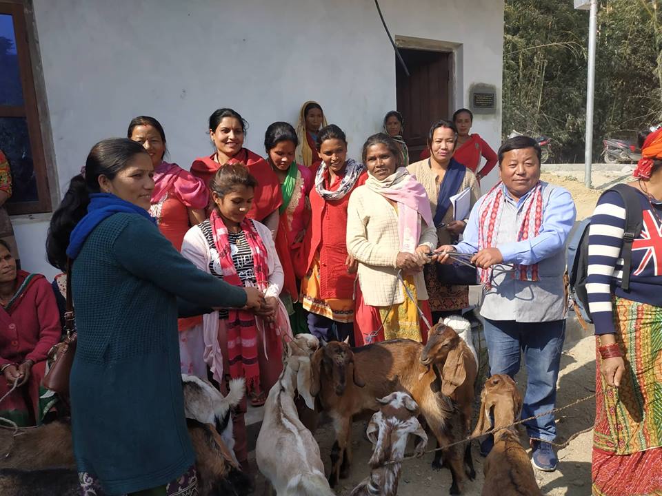 रिता राउत, उदयपुर, विपन्न र दलित परिवारका महिलाहरुको स्तर उन्नतीका लागि उन्न जातको बाख्रा वितरण गरेको छ । सोमबार त्रियुगा नगरपालिका १६ स्थित सुकौरामा २२ वटा उन्नत जातको बाख्रा वितरण गरिएको हो । वडा कार्यालयको २ लाख आर्थिक सहयोगमा ज्योती महिला बहुउद्देश्य सहकारी संस्था सुकौराको आयोजनामा विपन्न ६ घरका महिला र दलित ५ महिलाहरुलाई दुई वटाको दरले २२ वटा बाख्रा वितरण गरिएको हो । त्रियुगा नगरपालिका १६ मा ३० प्रतिशत जनता गरिवीको रेखामुनी रहेको तथ्याङ्कले देखाएको छ । गरिवी न्यूनीकरणको लागि ११ घर परिवारलाई वाख्रा वितरण गरिएको वडा अध्यक्ष मान वहादुर राईले वताए । वडा कार्यालयको २ लाख रकमबाट उक्त २२ वटा बाख्रा वितरण गरिएको वडा अध्यक्ष राईले बताए । व्यावसायिक पशुपालन तथा कृषि व्यावसायको प्रचुर सम्भावना भएकाले थोरै परिवारबाट शुरुवात गरेको वडाध्यक्ष राईले बाख्रा वितरण कार्यक्रममा बताए । बाख्रा वितरणले वडालाई आर्थिक पाटोमा ठूलो टेवा पु¥याउने र समृद्ध वडा बनाउने योजनामा अघि बढेको वडाध्यक्ष राईले बताए । आउँदो आर्थिक वर्षमा पशु तथा कृषि व्यावसायलाई विशेष प्राथमिकताको साथ बजेट विनियोजन गरि आर्थिक स्तरमा सुधार गरि समृद्ध वडा बनाउने लक्ष्य लिएको वडाध्यक्ष राईले बताए ।