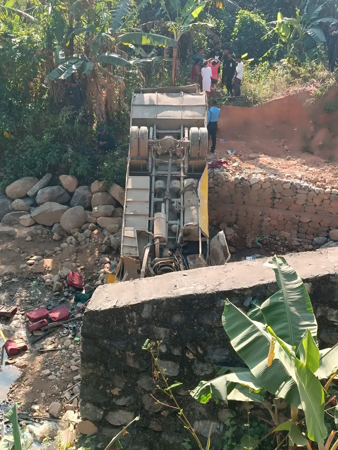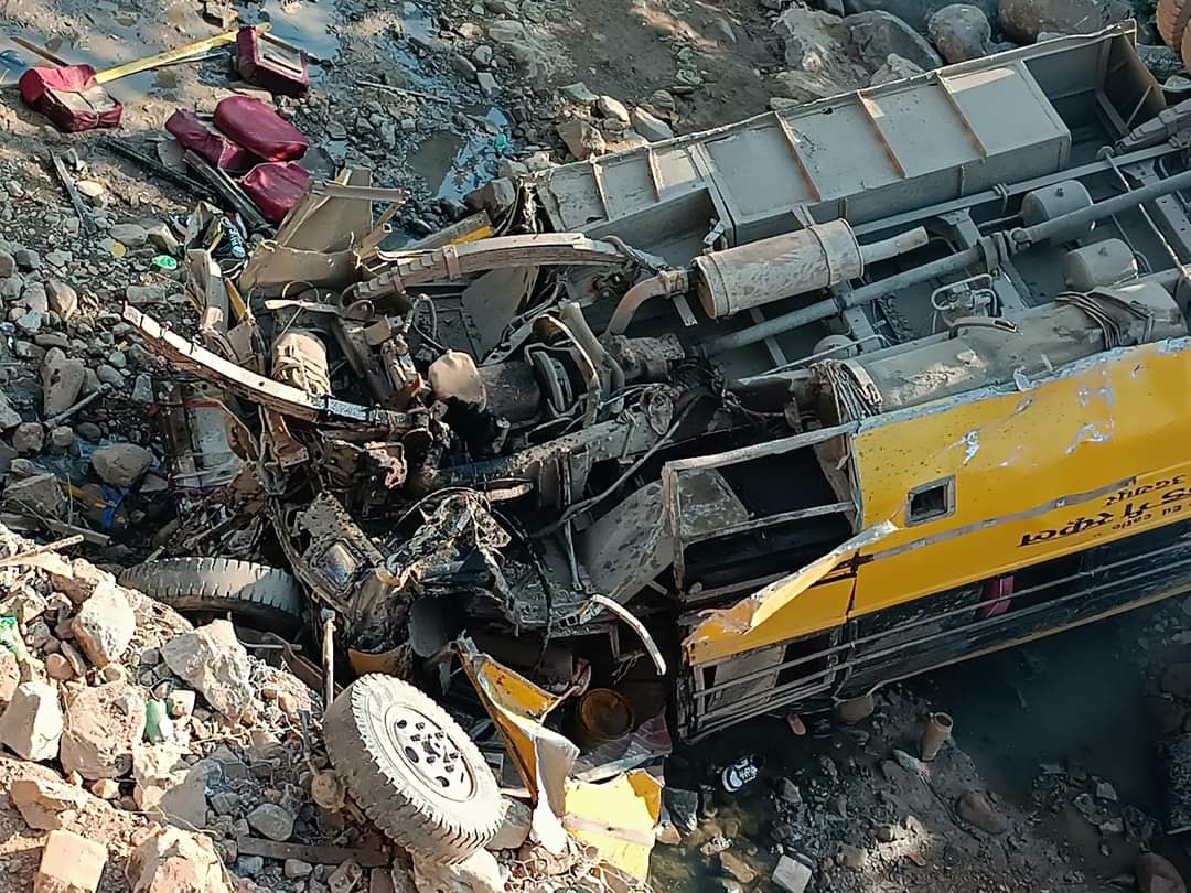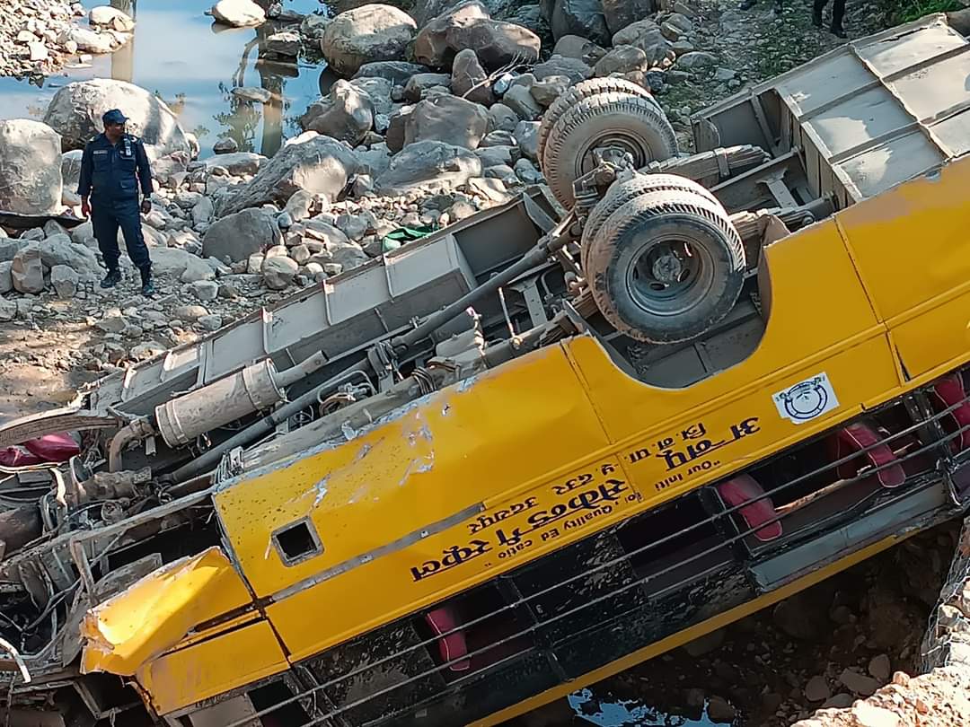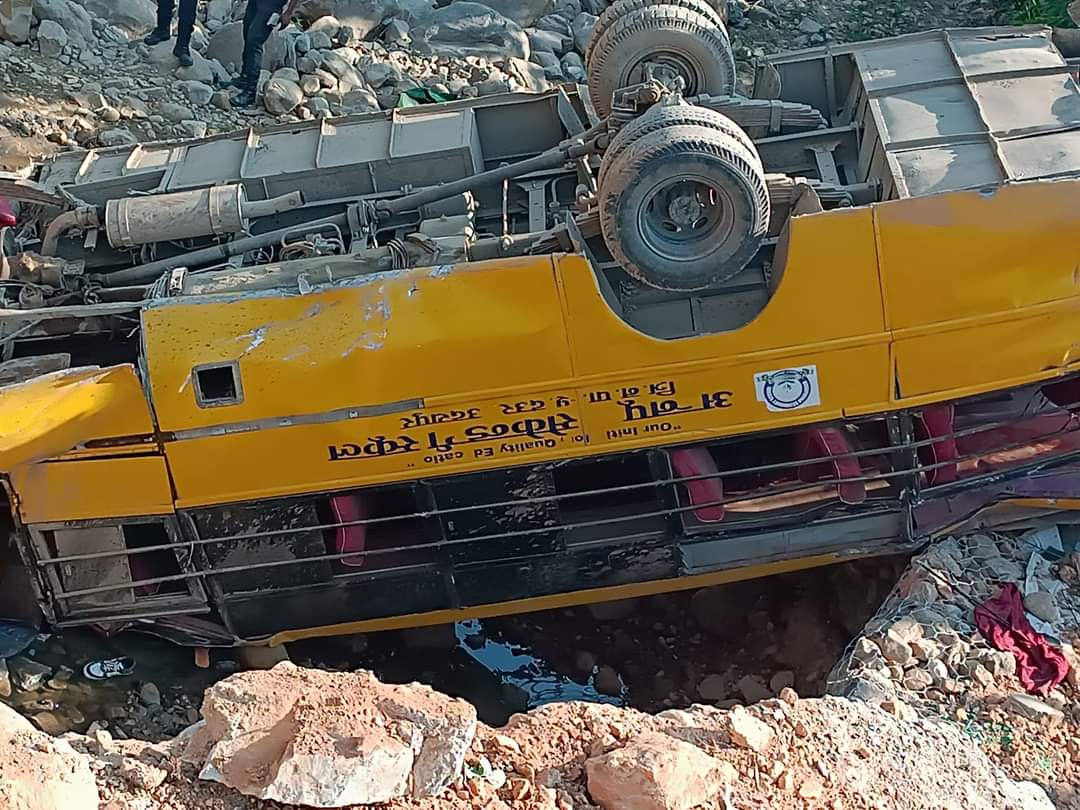 उदयपुर । उदयपुरमा एक स्कुल बस दुर्घटना हुँदा तीन जनाको मृत्यु भएको छ भने ३६ जना घाइते भएका छन् । त्रियुगा नगरपालिका– ५ देउरीमा रहेको अन्नपूर्ण सेकेन्डरी स्कुलका विद्यार्थी अभिभावक बोकेको बस शनिबार दुर्घटनामा परेको हो ।