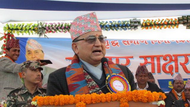 उदयपुर, उपप्रधान तथा रक्षामन्त्री इश्वर पोखरेलले नेकपा नेतृत्वको दुईतिहाई बहुमतको सरकार ९÷९ महिनामा फेरिने सरकार नभएको बताएका छन् । आईतबार गाईघाटमा आयोजित ‘उदयपुर साक्षर जिल्ला घोषणा कार्यक्रम’ को उद्घाटन गर्दै उपप्रधानमन्त्री पोखरेलले हिजो र आजको सरकार परिवर्तनमा धेरै भिन्नता रहेको बताए । रक्षा मन्त्री पोखरेलले भने, ‘साँच्चै परिवर्तन ल्याउन बद्लिएको सरकार हो, ९ महिना होईन, ५ वर्ष चल्ने, विकास, समृद्धि ल्याएर जनताको जीवनमा आमूल परिवर्तन ल्याउने सरकार हो ।’ शिक्षा, स्वास्थ्य, सुरक्षाजस्ता कुरा संविधानको मौलिक हकमै उल्लेख भएको भन्दै उनले त्यो पूरा गराउन सरकार प्रतिबद्ध रहेको बताए ।