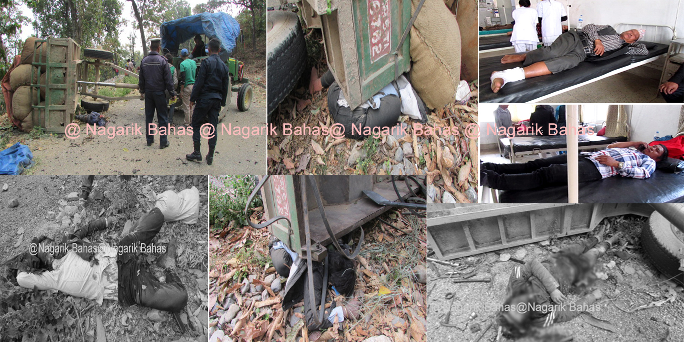 उदयपुर, उदयपुरमा ट्याक्टर दुर्घटनामा दुई जनाको घटना स्थलमै मृत्यु भएको छ भने ६ जना घाइते भएका छन् । त्रियुगा नगरपालिका १४ स्थित सगरमाथा लोकमार्गको साउने गाईघाट सडक खण्डमा तेजपत्ताको लोड बोकेकै ट्याक्टरले यात्रु समेत बोकेर गाईघाट आउँदै गर्दा बुधबार दिउँसो २ बजे दुर्घटनामा परी दुई जनाको मृत्यु भएको हो ।