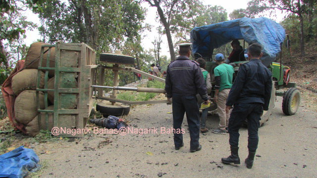 रौतामाई गाउँपालिका ५ आँपटारबाट तेजपात्त बोकी गाईघाट तर्फ आउँदै गरेको ना. ५ त ६७६२ नम्बरको ट्याक्टर चालक त्रियुगा १५ खाँबु बस्ने २७ बर्षिय दुर्गा बहादुर मगर र सोही ट्याक्टरमा सबार रौतामाई ५ आँपटार बस्ने ४२ बर्षिय दिल बहादुर राईको घटना स्थलमै मृत्यु भएको जिल्ला ट्राफिक कार्यालय उदयपुरका इन्चार्ज दिनेश कुमार चौधरीले जानकारी दिए ।