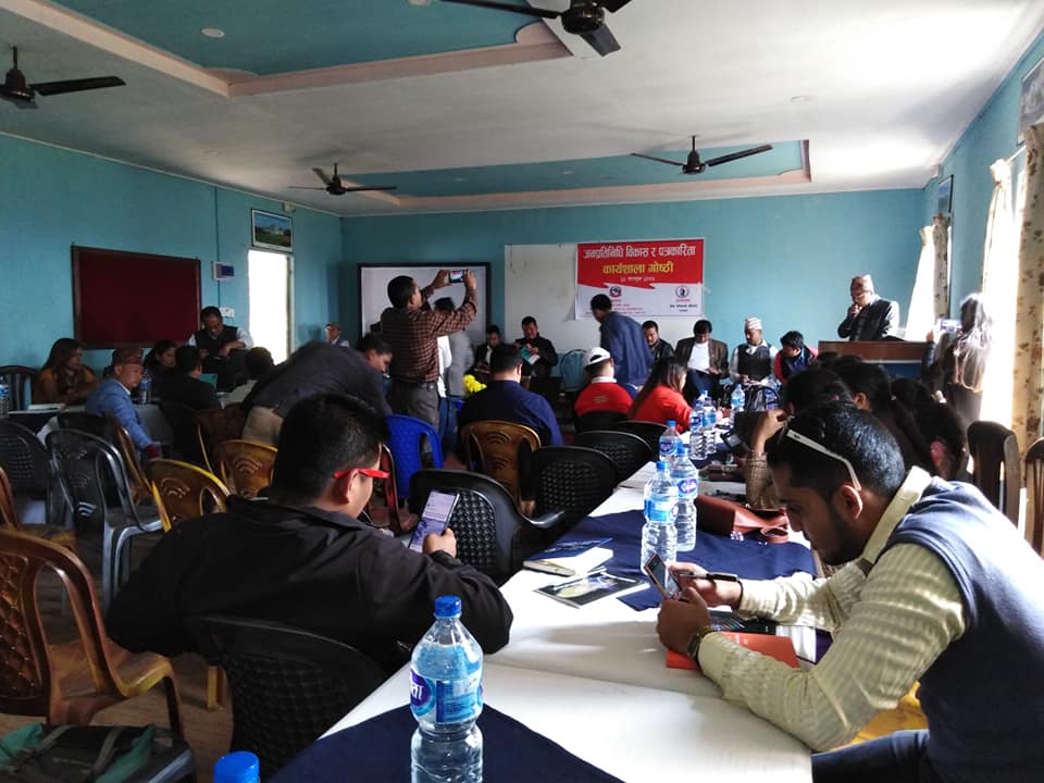 उदयपुर । उदयपुरमा जनप्रतिनिधि विकास र पत्रकारिता कार्याशाला गोष्ठी सम्पन्न भएको छ । प्रेस संगठन नेपाल उदयपुरको आयोजनामा सो कार्यक्रम सम्पन्न भएको हो । जनप्रतिनिधि र पत्रकार विच रहेको खालडलाई पुरेर आगामी दिनमा अगाडि वढ्न सकिने अधिकांश जनप्रतिनिधिहरुले बताएका थिए ।