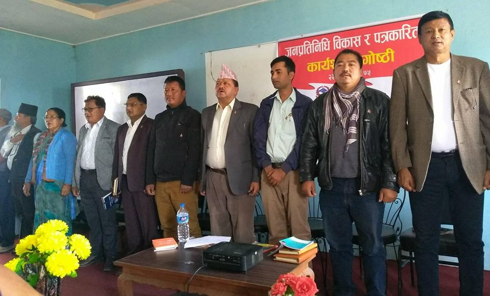 प्रतिनिधि सभा सदस्य सुरेश कुमार राई (हिमाल) ले कार्यक्रममा विकास र समृद्धिलाई अगाडि वढाउने सन्दर्भमा पत्रकारले खेल्नुपर्ने भुमिका र संचार माध्यमसम्म सूचनाको पहुँच पु¥याउन सहयोग गर्नु पर्ने बताए । उनले ‘जनप्रतिनिधि र विकास पत्रकारिता कार्यशाला गोष्ठी’ मा समाजलाई सही र गलत बाटो पहिल्याउन पत्रकार मियो बनेर आउनुपर्ने बताए । उनले डेढ वर्षको दौरानमा पार्टीको कार्यकर्ता तितर वितर अभिभावक हराएको जस्तो भएकोले चाँडै नै अभिभावक पाउने बताएका थिए । उनले चैत्रको पहिलो वा दोस्रो सप्ताहसम्म जिल्ला तहको संरचना आई सक्ने बताए ।