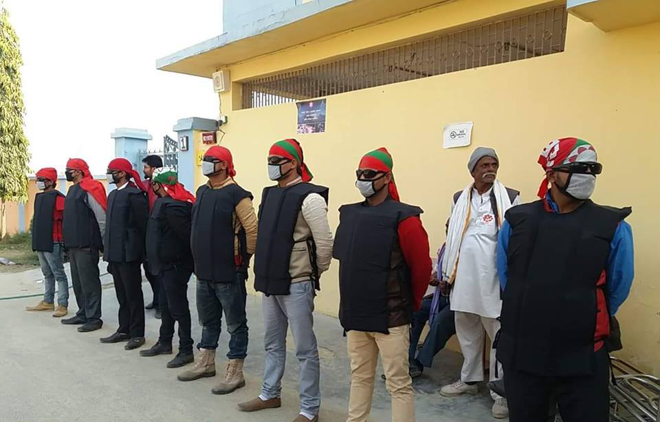 राउतको सुरक्षाका लागि भन्दै गार्ड समेत प्रयोग गरिएको छ । राउत विमानस्थलमा आइपुगनु अघि नै त्यहाँ पुगेका उनीहरुले बुलेट फ्रुफ ज्याकेटसँगै मास्क लगाएका थिए । उनीहरुले टाउकोमा रातो कपडा र स्वतन्त्र मधेस गठबन्धनको झण्डा बाँधिएको, आँखामा चश्मा लगाइएको र मास्कले मुख छोपेका छन् ।