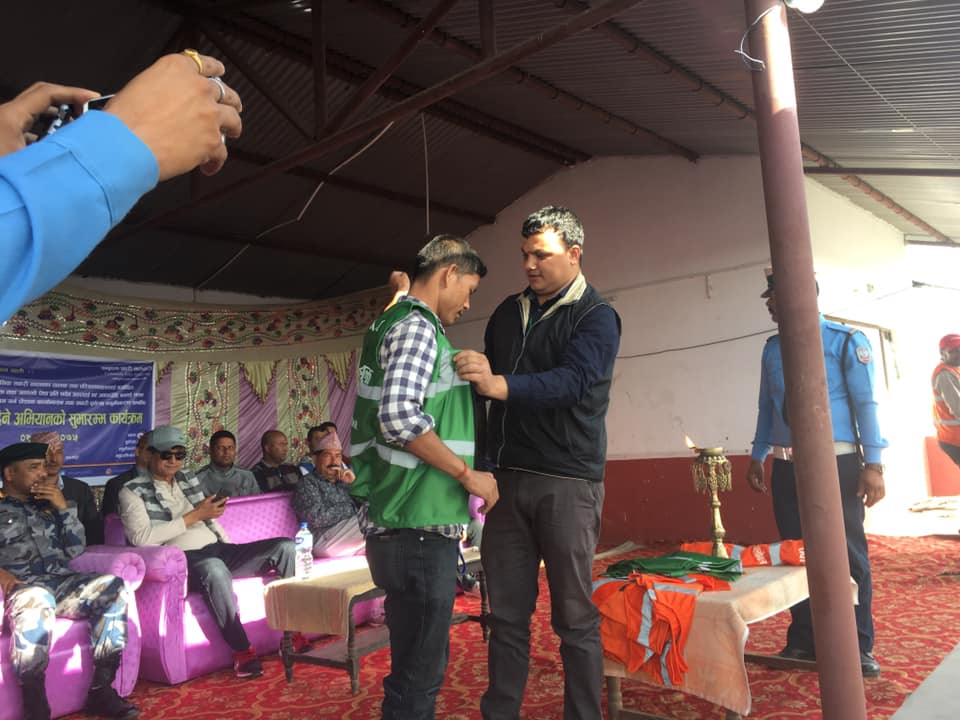 कार्यक्रममा चालक र सहचालकको पहिचानका लागि तयार पारिएको पोशाक समेत वितरण गरिएको थियो । सोअवसरमा मेयर चौधरीले सडक यातायात सुरक्षा आफ्नै लागि भएकाले दायित्व बोध हुने गरी जिम्वेवारी वहन गर्न सुझाब दिए ।