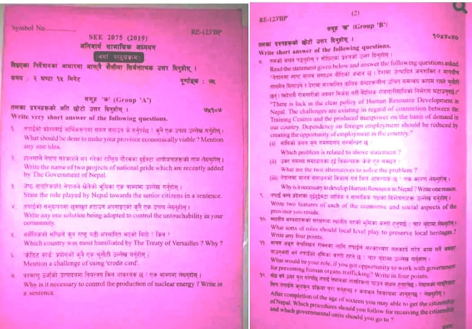 जनकपुरधाम : एसईई परीक्षाको प्रश्नपत्र बाहिरिने क्रम जारी रहेको छ । शुक्रवार हुने सामाजिक विषयको प्रश्नपत्र पनि बाहिरिएको छ । एक गोप्य स्थानमा प्रश्नपत्रको फोटो काँपी भइरहेका स्थानबाट प्रश्नपत्र फेला पारेको हो ।