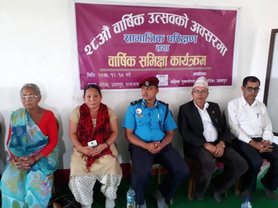 रिता राउत, उदयपुर । महिला पुर्नंस्थापना केन्द्र ओरेक नेपाल उदयपुरकोे २८ औँ वार्षिक उत्सव सोमबार सम्पन्न भएको छ । ओरेक नेपालको आफ्नै सभाहलमा २८ औं वार्षिक उत्सव सम्पन्न भएको हो ।