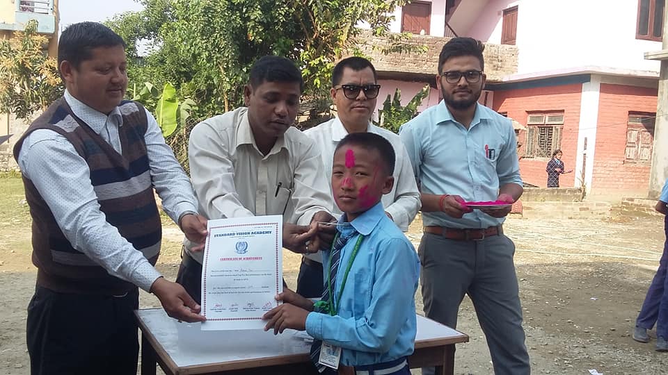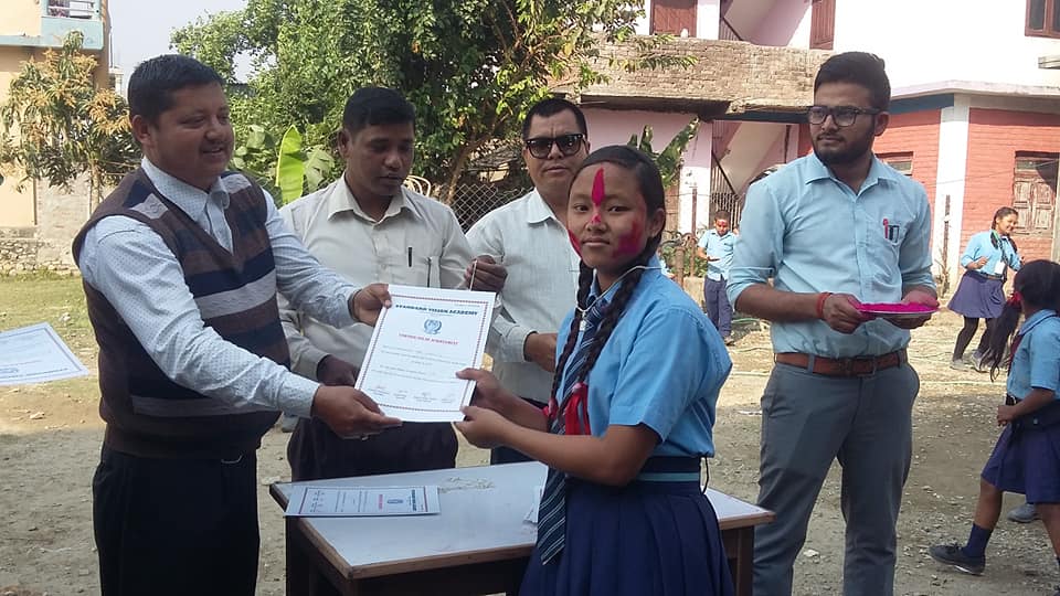 उदयपुर । स्ट्याण्डर्ड भिजन एकेडेमी मोतिगडाले गत वर्षको वार्षिक परीक्षामा उत्कृष्ठ १० विद्यार्थीलाई चाँदीको सिक्रीले पुरस्कृत गरेको छ । विद्यालयले एक कार्यक्रमका विच २०७४ सालको वार्षिक परीक्षामा उत्कृष्ठ नतिजा ल्याउने १० जना विद्यार्थीलाई दुई दुई तोला चाँदीको सिक्री सहित प्रमाण पत्र प्रदान गरेको हो ।
