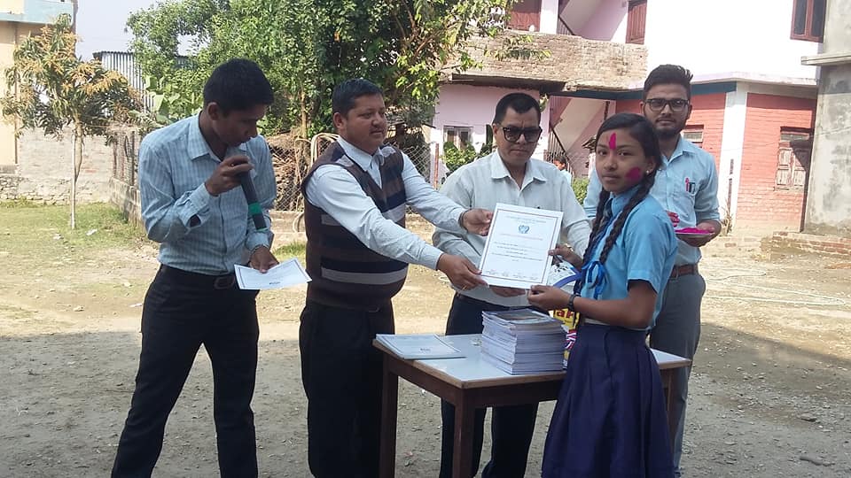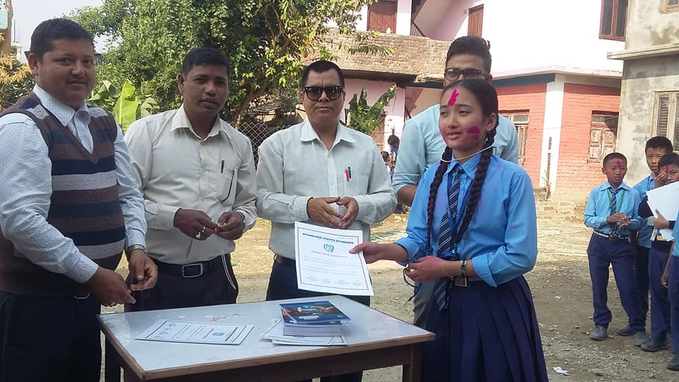 पुरस्कृत हुनेमा निशान राई, अविरल राई, सन्ध्या कार्की, उर्मिला राई, दिपिका थापा, रुजा राउत, विपिन रायमाझी, दिपराम राउत, सलिना बुढाथोकी र रोदी राई पुरस्कृत भएका हुन् । ९० प्रतिशत भन्दा माथि नतिजा ल्याउने उत्कृष्ठ १० विद्यार्थी पुरस्कृत भएका हुन् । विद्यालयले यस अघिका वर्षहरुमा पनि उत्कृष्ठ १० विद्यार्थीलाई चाँदीको सिक्री सहित पुरस्कृत गर्दै आएको थियो ।