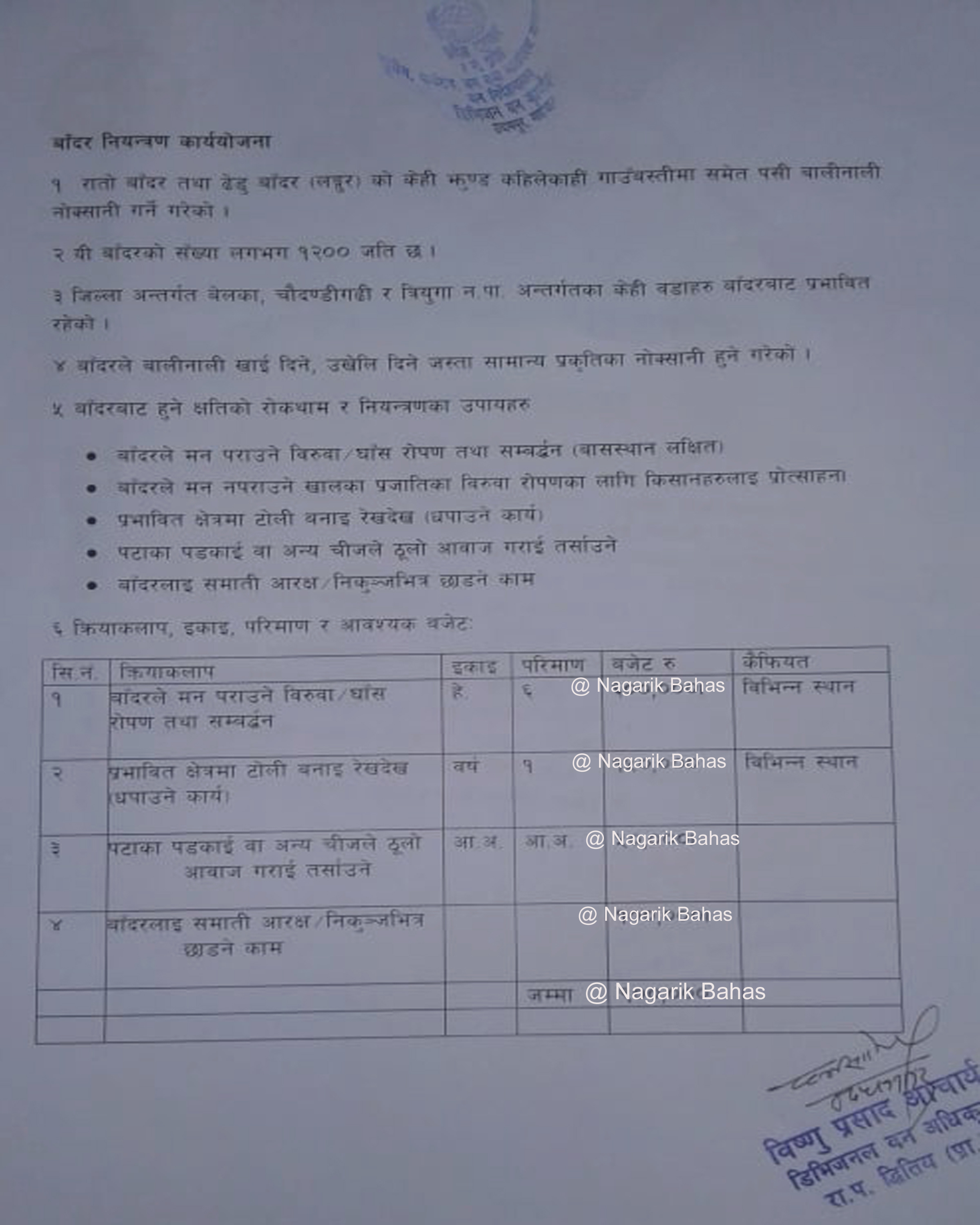 बाँदर नियन्त्रण कार्ययोजना प्रदेश मन्त्रालयमा पेश