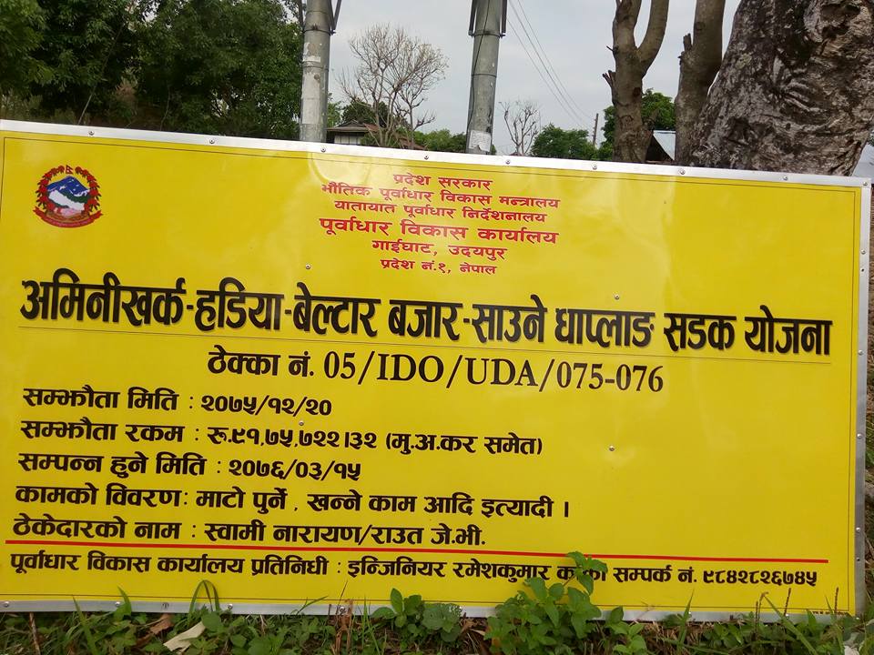 बाँकी काम तीन बर्ष भित्र सम्पन्न गर्ने गरी अगाडी बढाईने उनले बताए । उनले भने, “प्रदेशको नयाँ संरचना, अख्तियारीमा ढिलाई, केहि काममै अवरोधकाकारण ढिला भयो, बाँकी बर्षलाई अब सहज हुन्छ ।” समय ढिला भएकाकारण यो बर्ष ९१ लाख ७५ हजार ७ सय २२ रुपिँया ३२ पैसा बराबरको काम हुने उनले बताए ।