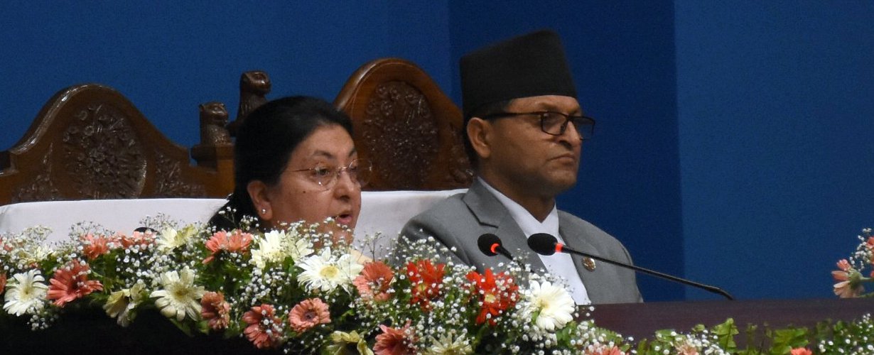 संविधान कार्यान्वयनका महत्त्वपूर्ण आधारहरू निर्माण गरी मूलतः सङ्क्रमणकाल समाप्त भई स्थायित्व विकसित भएको सुखद सन्दर्भमा आज फेरि यस गरिमामय सङ्घीयसंसदको दुवै सदनको संयुक्त बैठकलाई सम्बोधन गर्न पाउँदा मलाई खुशी लागेको छ। राष्ट्रलाई निरङ्कुश सामन्ती शासनप्रणालीको अँध्यारो युगबाट जनताका प्रतिनिधिमार्फत् राज्य सञ्चालन गर्ने सङ्घीय लोकतान्त्रिक गणतन्त्रको उज्यालो युगमा पुर्याउने क्रममा जीवन उत्सर्ग गर्नुहुने सम्पूर्णज्ञात अज्ञात सहिदहरूप्रति श्रद्धाञ्जली अर्पण गर्दछु। राष्ट्रियता, राष्ट्रिय हित एवं स्वाभिमान, लोकतन्त्र र जनजीविकाको आन्दोलनको नेतृत्व गर्नुहुने अग्रजहरूप्रति उच्च सम्मान व्यक्त गर्दछु, नेपाली समाजको रूपान्तरणमा उहाँहरूले पुर्याउनुभएको योगदानको स्मरण गर्न चाहन्छु।