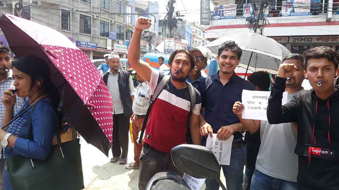 आइतबार धरान उपमहानगरपालिकाकी कार्यबाहक मेयर मञ्जु भण्डारीको नेतृत्वमा विभिन्न राजनीतिक दलका प्रतिनिधि, नागरिक समाजका प्रतिनिधि र स्थानियवासीले विराटनगरस्थित प्रदेशसभा भवन अगाडि प्रदर्शन गरेका हुन् ।