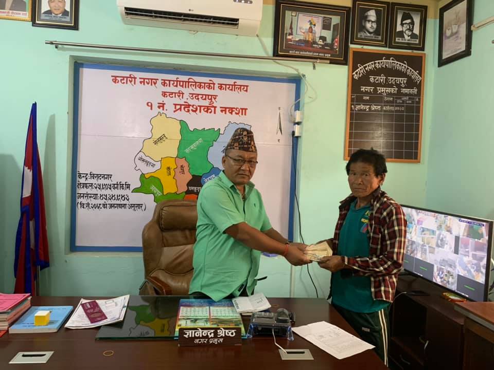 शेरबहादुरलाई ४० हजार, धन बहादुरलाई ३० हजार र विचारीलाई २० हजार राहत रकम नगर प्रमुख ज्ञानेन्द्र श्रेष्ठले हस्तान्तरण गरेका हुन् ।
