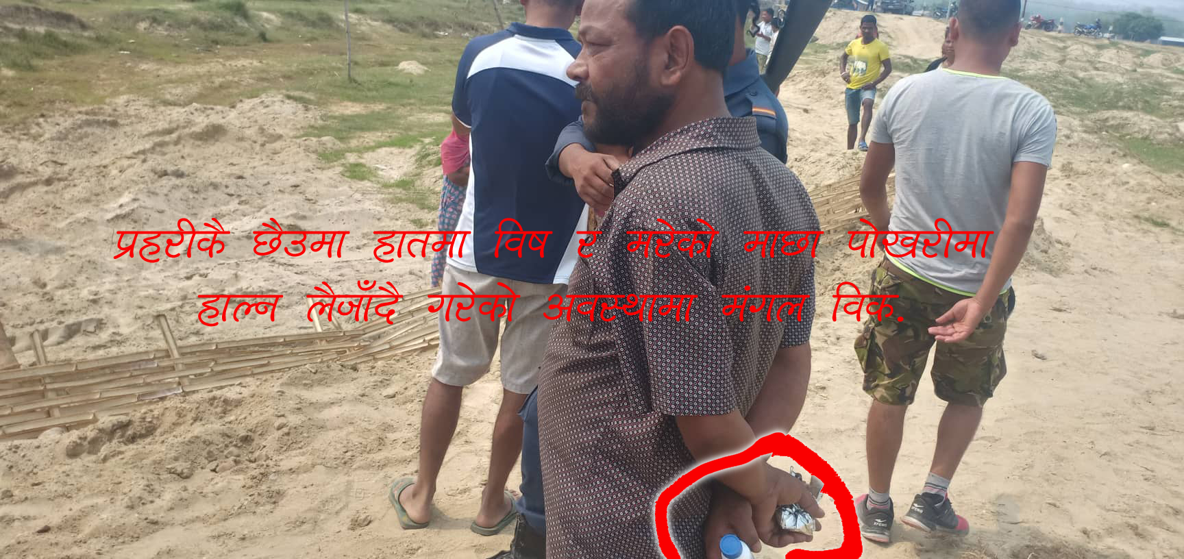 घटनाको भोली पल्ट शुक्रबार विहान प्रहरीले प्रकृति घटना मुचुल्का तयार गर्न जाँदा प्रहरीकै सामुन्नेमा सन्तोष र उनका कालीगढ विकले पोखरीमा विष र ९–१० वटा मरेको माछा लगाउँन लागेका थिए । गाउँलेहरुले विष र मरेको माछा लगाउँदै गरेको देखेपछि सन्तोष र कालीगढ विकलाई नियन्त्रणमा लिएर प्रहरीलाई नै बुझाएका थिए ।
