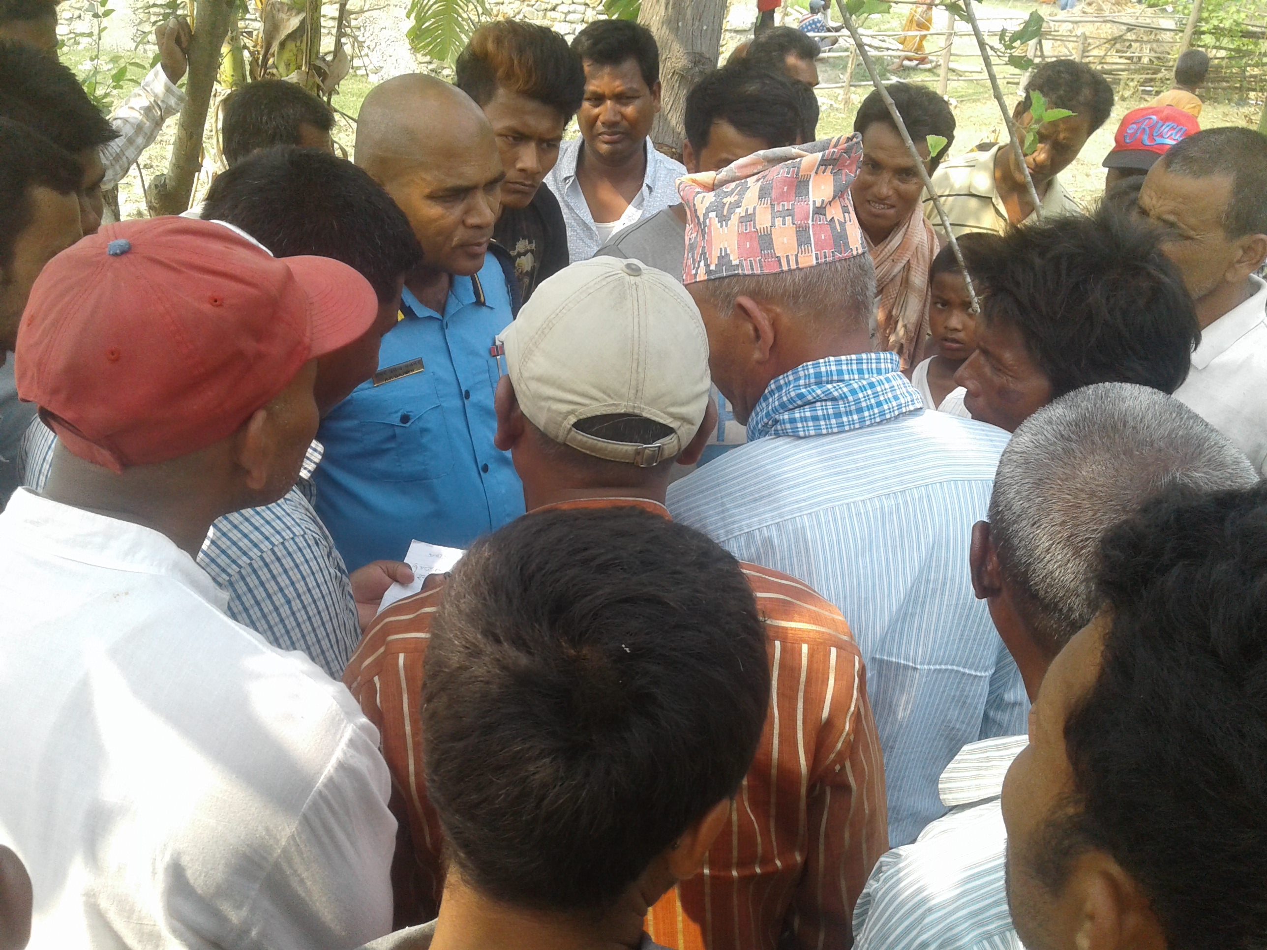यस्तै विहिबारै जग्गा किचलो विवादमा पोखरी पुरेको र पोखरीमा विष लगाएको आरोपमा घुरन चौधरी र हरेराम चौधरीलाई पक्राउ गरेपछि विवाद भएको थियो । विहिबार साढे पाँच बजेसम्म जग्गा किचलो र विष लगाएको विषयमा छलफल भएको त्रियुगा नगरपालिका २ का वडा अध्यक्ष घमान सिंह खत्रीले बताए । तर, विवाद टुंगो नलागेपछि भोली बसेर छलफल गरौंला भनेर प्रहरी कार्यालयबाट हिडेको बताए । उनका अनुसार त्यस समय सन्तोष र उनका दाजु असोक प्रहरी कार्यालयमा सँगै रहेको बताए ।