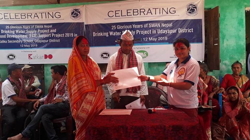 संस्थाले स्थानिय लाली गुराँस महिला समूहलाई खानेपानीको लागि कटारी ७ स्थित १ सय १ घर धुरीको लागि डिपबोर्डिङ गरि लिफ्टिङ प्रबिधिबाट शुद्ध खानेपानी वितरण कार्यको वडा अध्यक्ष धन कुमार दनुवारले शिलान्यास समेत गरेका छन् । १९ लाखमा निर्माण गरिने डिप बोरिंगको निर्माण गर्न २० प्रतिशत वडा कार्यालयले बेहोर्ने गरी निर्माण शुरू गरिएको वडा अध्यक्ष दनुवारले बताए ।