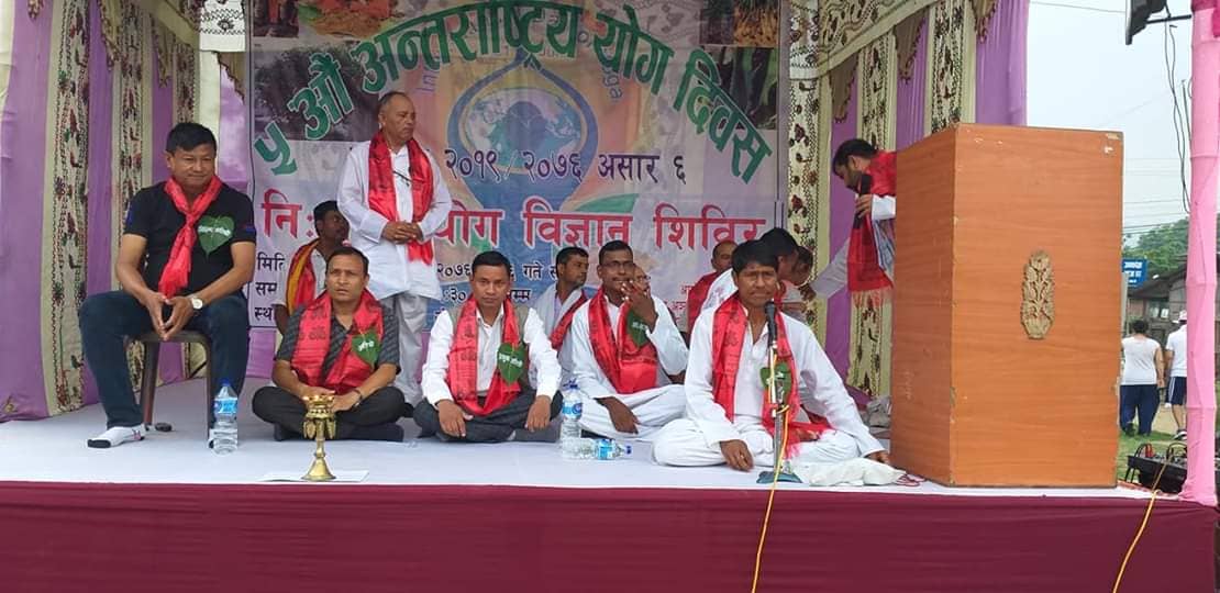 कार्यक्रमको शुरुवात जिल्ला समन्वय समितिका संयोजक खड्ग बहादुर परियारको प्रमुख अतिथ्यतामा निःशुल्क योग शिविर संचालन भएको हो । उनले योगले शारीरिक तथा मानसिक रुपमा पनि नागरिकलाई स्वस्थ बनाउने भएकाले सरकारले यसलाई जोड दिएर राष्ट्रिय दिवसको रुपमा मनाउने गरेको पनि जानकारी दिए ।