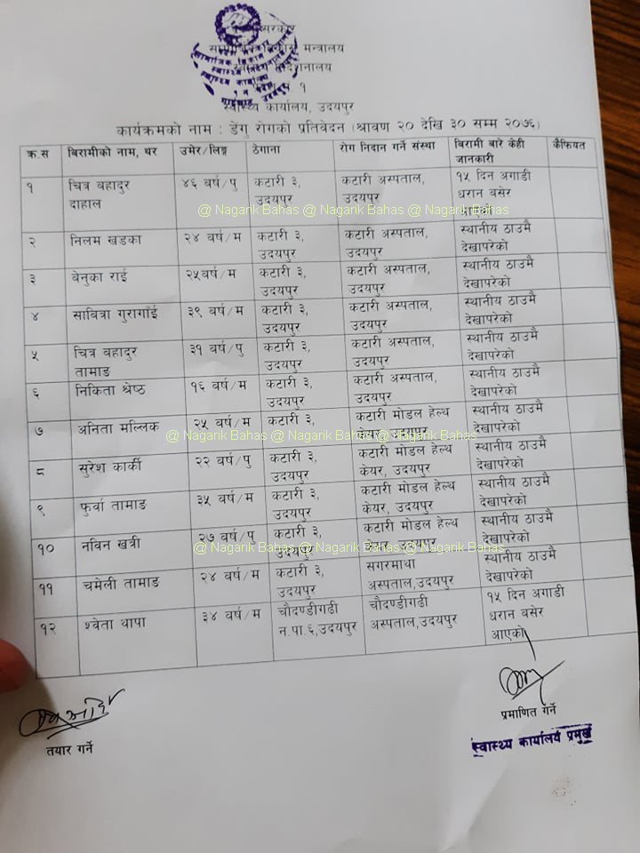 - उदयपुरमा पनि डेंगु रोगको विरामी फेला