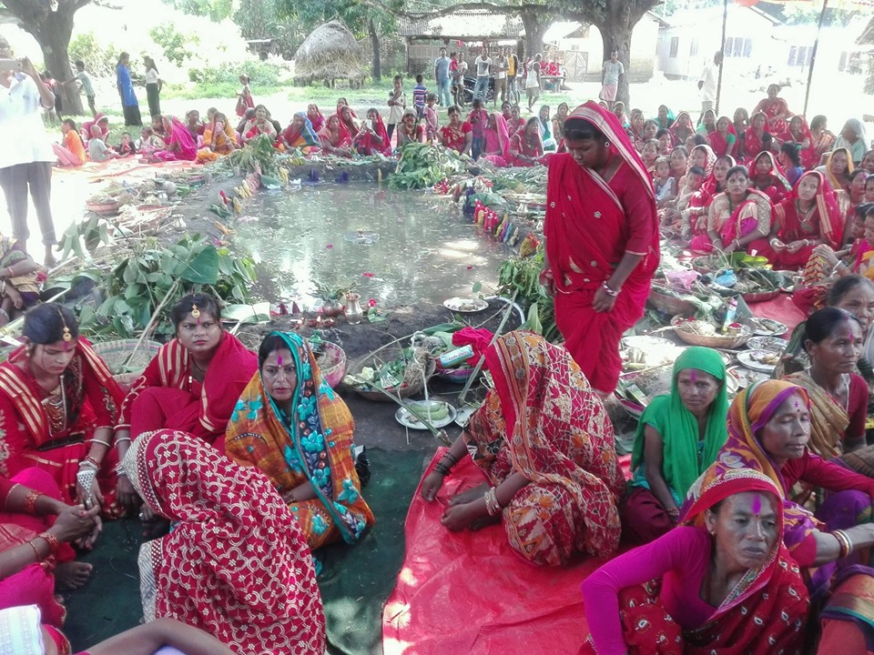 १४ वर्षपछि खर जितिया ‘शुद्ध जितिया’ मनाउँदै थारु महिलाहरु जितियाको उपासका दिन त्रियुगा, चौदण्डीगढी र बेलका नगरपालिकाका थारु बस्तीहरुमा जितमहानको मूर्ति बनाई पुजाआजा गर्नुको साथै कथा प्रवचन सुनेर दाजुभाईले दिदी बहिनीलाई पोखरी तार्ने काम गरेको थियो ।
