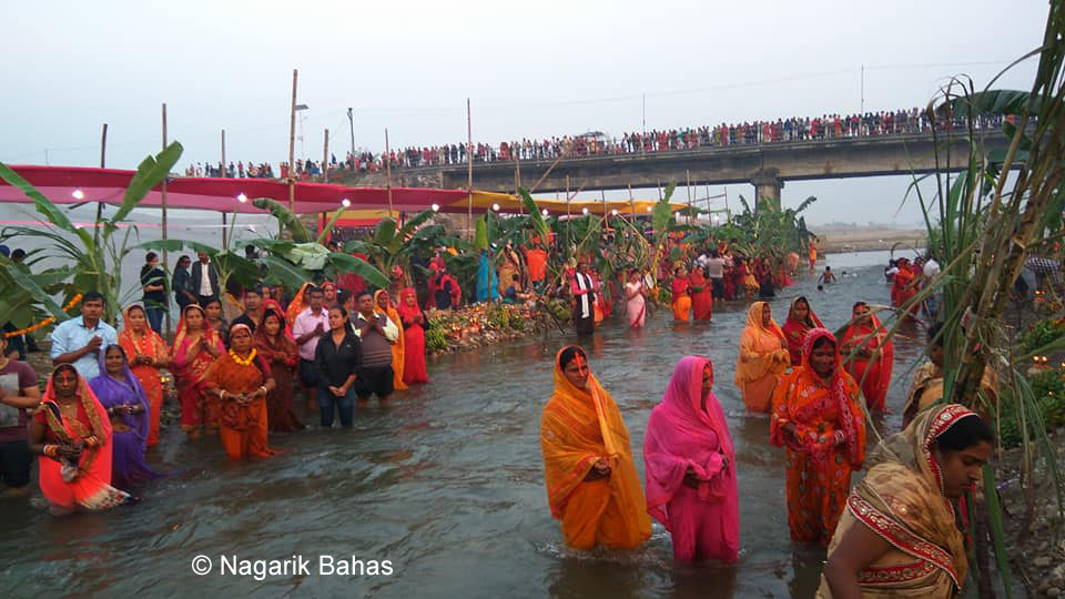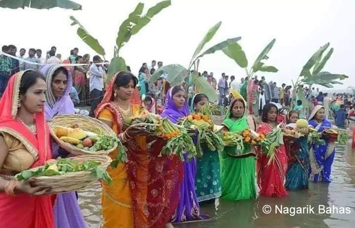 उदाउँदो सुर्यलाई अध्र्य दिँदै श्रद्धा र निष्ठापूर्वक मनाइने छठ पर्व विधिबत रुपमा सम्पन्न भएको छ । कात्तिक शुक्ल चौथी देखि सप्तमीसम्म विभिन्न बिधिपुर्वक मनाइने छठ पर्वको पहिलो दिन व्रतालुहरुले व्रत संकल्प गरी स्नान गरेर चोखो नितो खाएका थिए । पहिलो दिनको यो विधिलाई स्थानिय बोलीचालीको भाषामा ‘नहाय–खाय’ भनिन्छ । मुलतः सूर्यदेवको उपासना गरिने छठ पर्वको दोस्रो दिन पञ्चमी तिथिमा व्रतालुले दिनभरी निराहार व्रत बसी राति सख्खरमा पकाइएको खीर मात्र खाएर ‘खरना’ विधि गरेका थिए । त्यस्तै, षष्टी तिथीको दिन अर्थात मंगलबार संध्याकालिन र आज (बुधबार) प्रभातकालिन सुर्यको अर्घ दिएपछि चार दिवसीय छठ पर्व बिधिवत रुपमा समापन भएको छ ।
