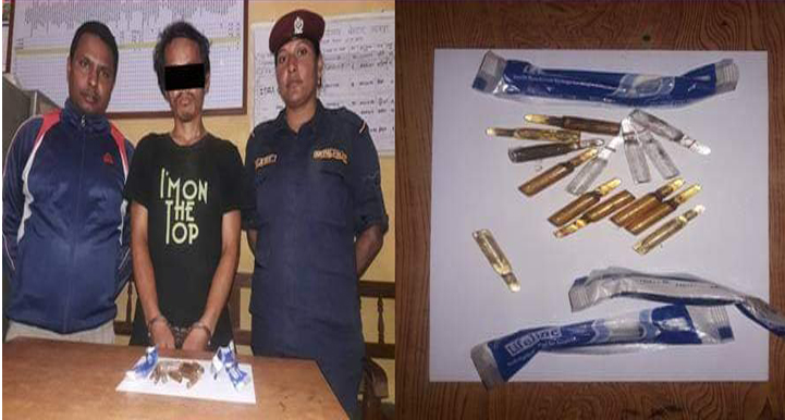 बुधबार राति ९ः३० बजेको समयमा चौदण्डीगढी नगरपालिका ४ नमुना टोलमा एक जना मलद्वारमा लागूऔषध लुकाई छिपाई ल्याउँदै गरेको अवस्थामा पक्राउ परेको छ । पक्राउ पर्नेमा चौदण्डीगढी नगरपालिका ७ बस्ने ३४ वर्षिय उमेश राई रहेको जिल्ला प्रहरी कार्यालय उदयपुरका एसपी बीर बहादुर बुढामगरले जानकारी दिए । उनका अनुसार सप्तरी जिल्लाको फत्तेरपुरबाट उदयपुरको बसाहा तर्फ शंकास्पद अवस्थामा पैदलै आउँदै गरिरहेको राईलाई सोधपुछ तथा खानतलासी लिने क्रममा मलद्वारा भित्र लागूऔषध फेला परेको जानकारी दिए । पक्राउ परेका राईले ट्राउजरको गोजीमा लुकाई ल्याएको ३ वटा सिलप्याक सिरिन्ज र निजले मलद्धार भित्र लुकाई छिपाई ल्याउँदै गरेको अबैध लागूऔषध २० एम्पुल सहित पक्राउ परेको थियो । उनलाई आवश्यक कारबाहीको लागि इलाका प्रहरी कार्यालय बेल्टारमा आवश्यक अनुसन्धान भईरहेको प्रहरीले जानकारी दिए ।