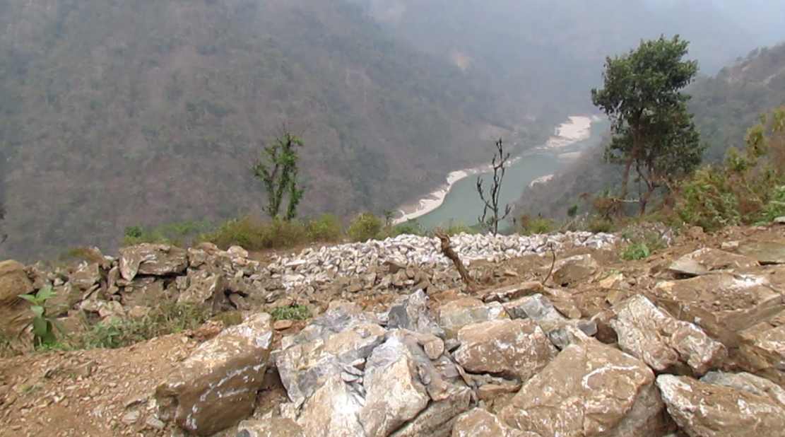 चौदण्डीगढी नपा ८ टोडकेको बेसारामा मापदण्ड विपरित चुनढुंगा खानी उत्खन्न गरिदाँ गाउँ नै उच्च जोखिममा