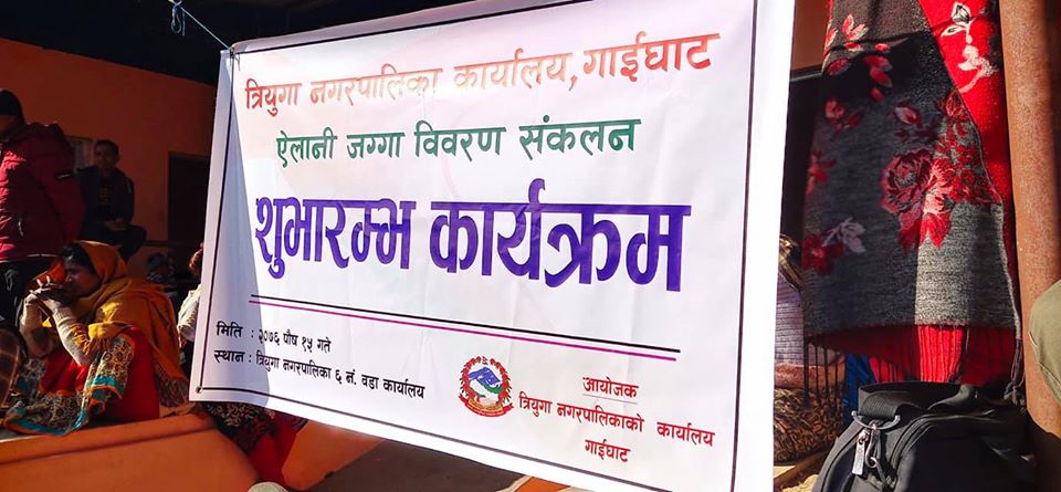 उदयपुर । उदयपुरको त्रियुगा नगरपालिकाले जिपीएस प्रविधिबाट ऐलानी जग्गाको नाप जाँच कार्य थालनी गरेको छ । नगरपालिका क्षेत्रको ऐलानी जग्गा विवरण संकलन कार्यका लागि मङ्गलबारदेखि नाँपजाँच सुरुवात गरेको हो ।