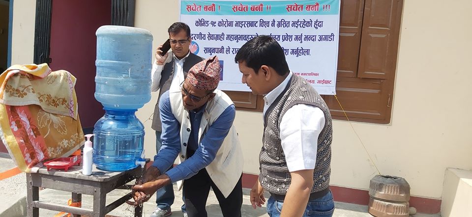 भाइरसबाट बच्ने यो एउटा महत्वपुर्ण उपाय भएकोले कार्यालयमा आउने सेवाग्राहिका लागि साबुन पानीको ब्यबस्था गरिएको वडा अध्यक्ष बिश्वराज भट्टराइले जानकारी दिए । उनका अनुसार कोरोना भाइरस मात्र नभएर खानपान तथा अन्य सरूवा रोगबाट बच्न तथा सरसफाइको बारेमा जनचेतना जगाउन पनि यो व्यवस्था गरिएको बताए । स्वास्थ्यका दृष्टिकोणले साबुन पानीले हात धुन फाइदाजनक रहेको भन्दै कार्यालय प्रबेश गर्नु पुर्व अनिबार्य हात धुने व्यवस्था मिलाइएको अध्यक्ष भट्टराइले बताए ।